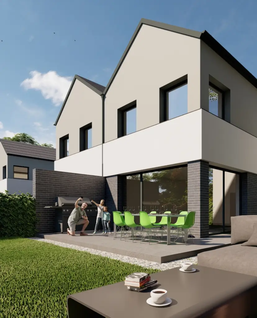 Komfortowe domy dwupoziomowe o powierzchni 98,9 m² z dużymi ogrodami